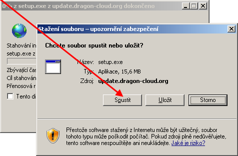 Instalátor aplikace stáhněte z adresyhttp://update.dragon-cloud.org/setup.exe a rovnou jej spusťte, nebo jej uložte ji do složky, kam obvykle stahujete programy; pak jej ale musíte spustit ručně.