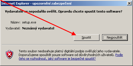 ... v dialogu "Internet Explorer - upozornění zabezpěčení" se vás systém ptá, zda opravdu chcete aplikaci spustit. Klepněte na tlačítko "Spustit".